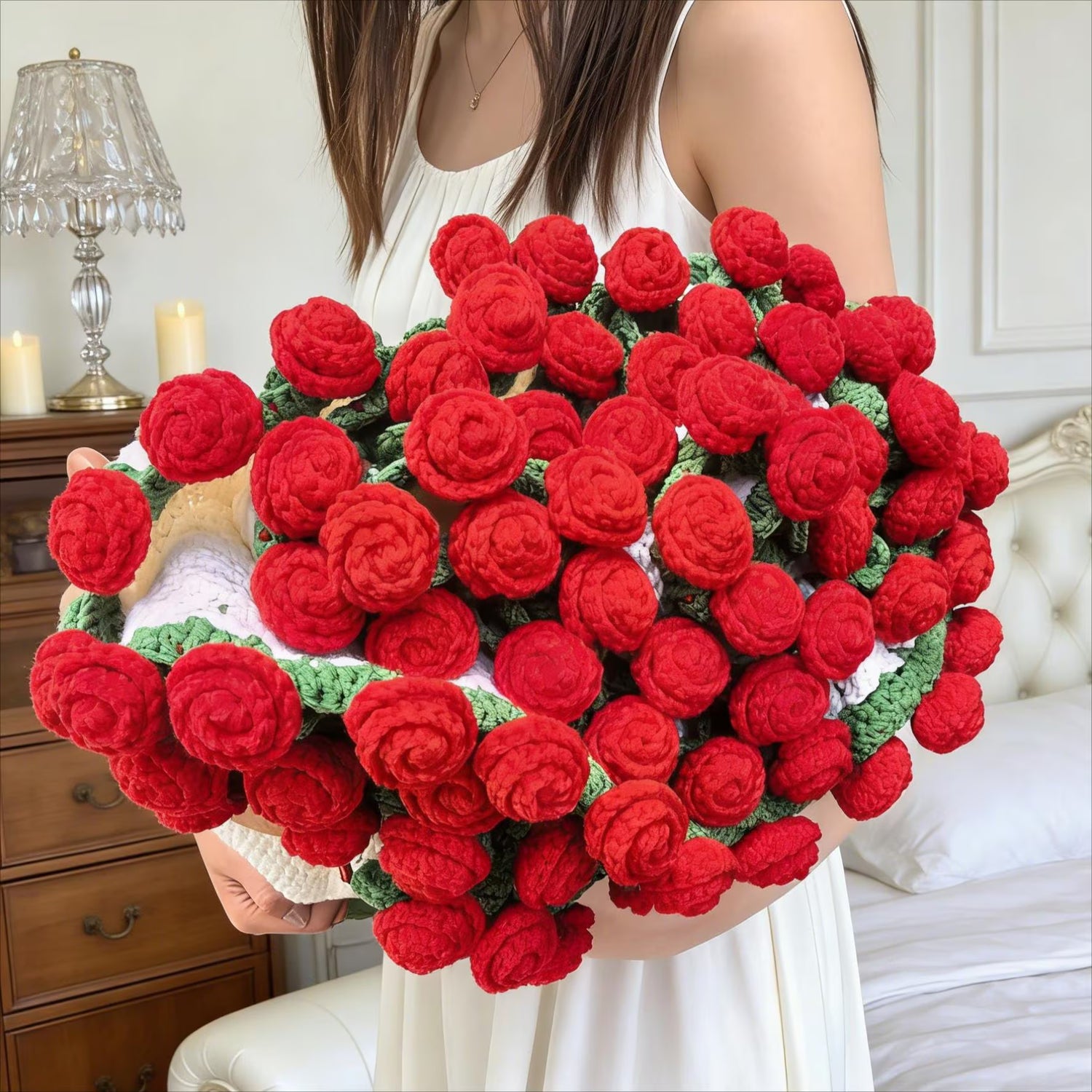 Not at all. Unlike real flowers, knitted roses don’t need water or sunlight—just keep them clean and enjoy them forever.